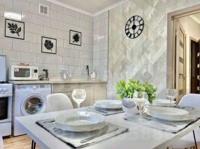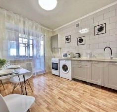 Жильцам предоставляется из мебели: кухонный гарнитур, итальянский спальный гарнитур: кровать, тумбочки, комод; диван раскладной, шкаф-купе, cтол, стулья. Из техники: холодильник, плита, духовка, микроволновая печь, телевизор, чайник, стиральная машина.