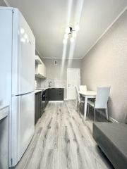 В квартире сделан качественный современный ремонт. Имеется вся необходимая техника и мебель. 2 спальных места (диваны), гардеробная. Большой совмещенный сан узел. Огромный балкон. Квартира укомплектована.
