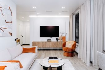 Квартира выполнена в современном дизайнерском стиле с использованием качественных материалов и продумана до мелочей для вашего комфорта.