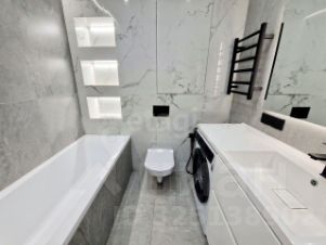 В ванная комната облицована керамогранитом Lараrеt с теплым полом, раковина со встроенной стиральной машиной LG, зеркало с подсветкой и обогревом, акриловая ванна, инсталляция ТЕСЕ, полотенцесушитель, вся сантехника черного цвета производства Италии. За люком скрытого монтажа установлен бойлер Еlесtrоluх на 50 литров.