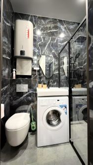 • Ванная, санузел: душевая кабина, стиральная машина, гель для стирки, фен, мусорное ведро с автоматической, бесконтактной крышкой, туалетная бумага, крем-мыло для рук, освежитель воздуха.