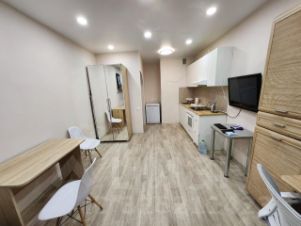 Квартира выполнена с евроремонтом, что позволяет сразу же заехать и наслаждаться комфортом. В наличии вся необходимая мебель на кухне и в комнате. Жилье укомплектовано современной техникой: есть кондиционер, холодильник, телевизор и стиральная машина. Ванная комната оборудована душевой кабиной, что добавляет удобства.