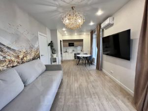 Сдается ЕвроДвухкомнатная квартира в ЖК Уникум от Унистрой (2022 года постройки). Комплекс с закрытой территорией , видеонаблюдением , круглосуточной охраной , есть отдельное здание парковки : стоимость места от 3000 рублей , детские площадки, футбольное поле и фонтан. В квартире выполнен стильный ремонт , есть вся необходимая техника и мебель ! На кухне-гостиной : диван, телевизор 65 дюймов, кондиционер, посудомоечная машина, холодильник, варочная панель , духовой шкаф , вытяжка , микроволновая печь, выход на балкон ; в комнате : телевизор 55 дюймов, новая кровать с мягким матрасом, огромный шкаф; в коридоре- шкаф ; в ванной комнате: стиральная машина , ванна угловая 150/90 фигурная , умывальник, инсталляция, шкаф , фен и полотенцесушитель. Вход в квартиру через код! (Ключ не нужен) . Есть интернет и телевидение (1400 рублей в месяц)