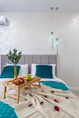 В гостиной установлен СМАРТ-телевизор с умной колонкой Алиса, которая может включить музыку, фильм, рассказать сказку и многое другое. Умный дом позволяет управлять освещением в спальне: включить/выключить и изменить цвет светильников.