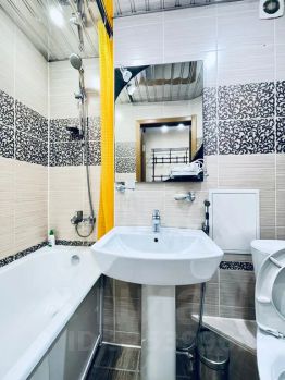 Квартира состоит из просторной гостиной, уютной спальни, полностью оборудованной кухни и современной ванной комнаты. В гостиной есть телевизор, вы можете отдохнуть после долгого дня. Спальня оборудована комфортной двуспальной кроватью и гардеробной, где вы можете разместить свои вещи. Кухня оснащена всем необходимым оборудованием и посудой для приготовления пищи. В ванной комнате есть душевая кабина и все необходимые удобства.