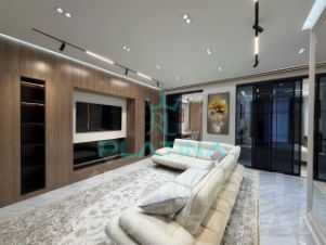 Просторная и светлая гостиная с уютной ТВ-зоной для приятного отдыха после насыщенного рабочего дня.