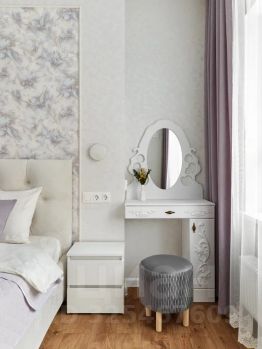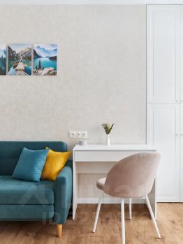 • Гостиная: комфортный диван (раскладной, на котором удобно спать) и полноценное рабочее место для учебы или удаленной работы.