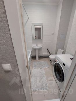 Санузел совмещённый, выполнен в светлых тонах.Есть стиралка.