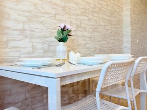 Оборудованная кухня со всем необходимым: варочная панель, духовой шкаф, микроволновая печь, эл. чайник, набор посуды для приготовления пищи (сковорода, сотейник, кастрюля, а также приборы), посуда на 4 персоны и столовые приборы.