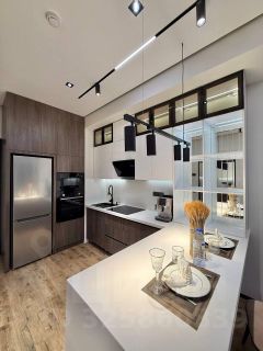 В квартире сделан дизайнерский ремонт, который подчёркивает её уникальность и стиль. На кухне есть вся необходимая мебель и техника: холодильник, посудомоечная машина и стиральная машина. В гостиной установлен кондиционер и телевизор, что добавляет комфорта вашему проживанию. Планировка включает один санузел с душевой кабиной и балкон, с которого открывается вид на улицу.