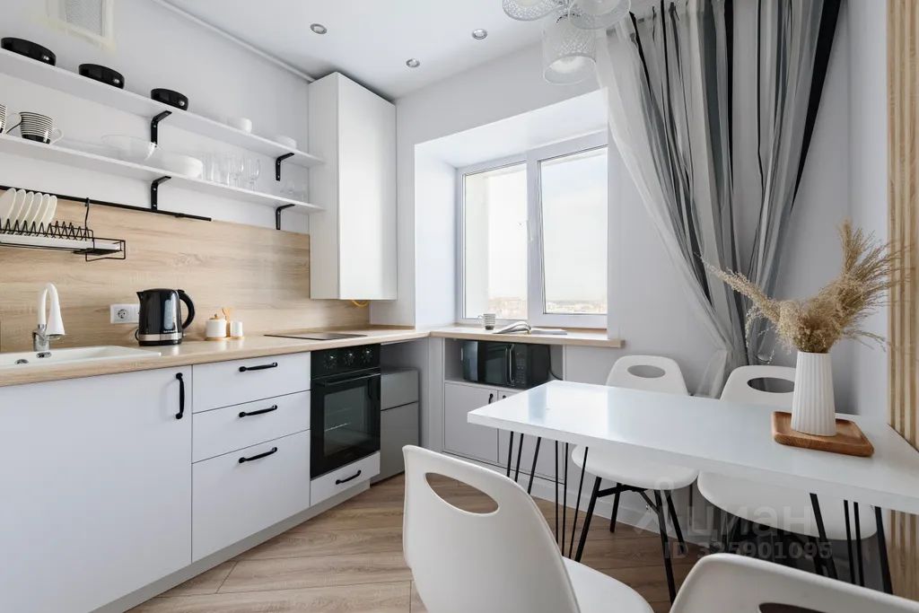 Полностью оборудованную кухню: чайник, плита, духовой шкаф, холодильник, микроволновая печь и всё необходимое для готовки.