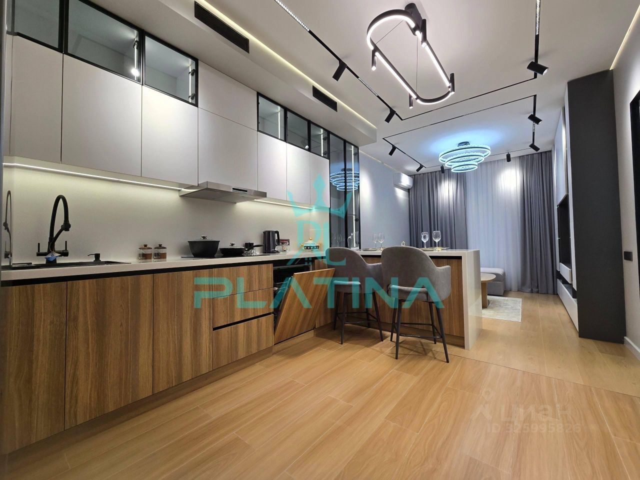Просторная гостиная-кухня, объединённая единым пространством, позволяющая наслаждаться домашним теплом и уютом.