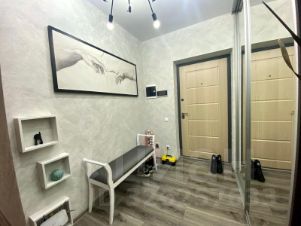 Квартира радует стильным дизайнерским ремонтом и удобной планировкой. В квартире есть всё необходимое для комфортного проживания: кондиционер, холодильник, посудомоечная и стиральная машины, телевизор. На кухне и в комнатах уже установлена мебель. В ванной комнате установлена душевая кабина. Для дополнительного удобства в квартире имеется совмещённый и отдельный санузлы. Также есть лоджия, где можно отдохнуть на свежем воздухе.