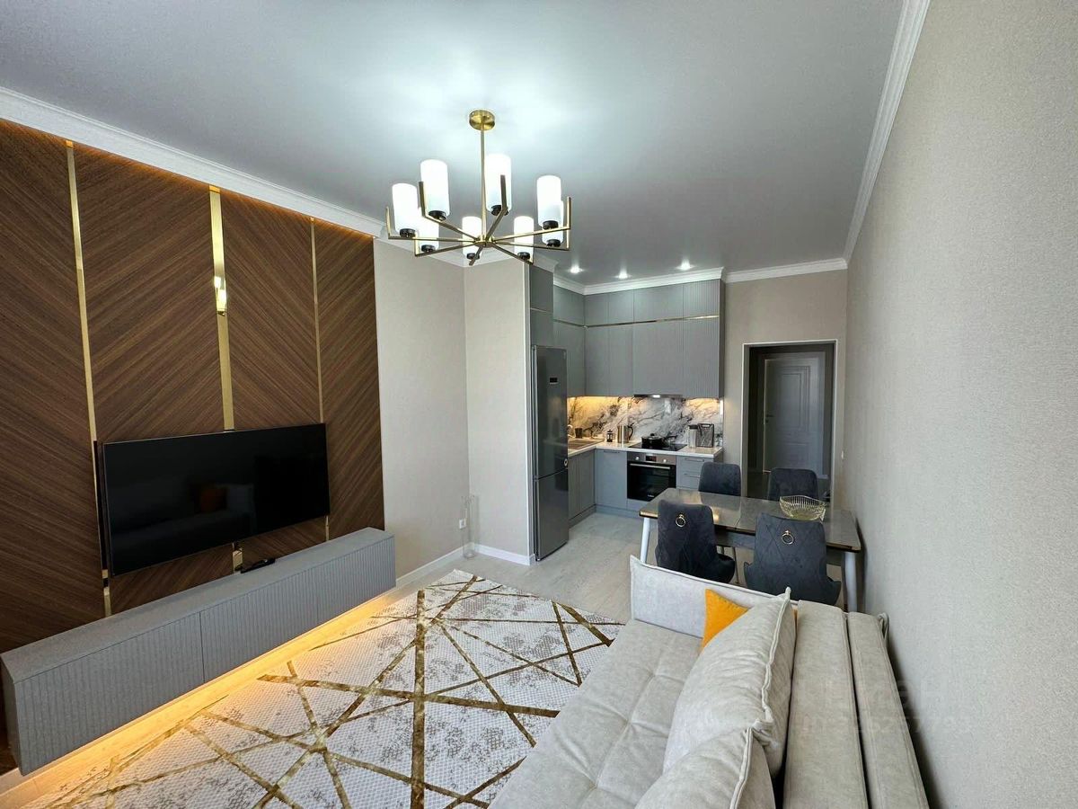 В квартире есть все необходимое для комфортной жизни: современная мебель на кухне и в комнате, кондиционер, холодильник, посудомоечная и стиральная машины, а также телевизор. Просторная ванная комната оборудована душевой кабиной. Квартира оснащена интернетом и телефоном для вашего удобства. Жилье также имеет одну лоджию, где приятно провести время на свежем воздухе.