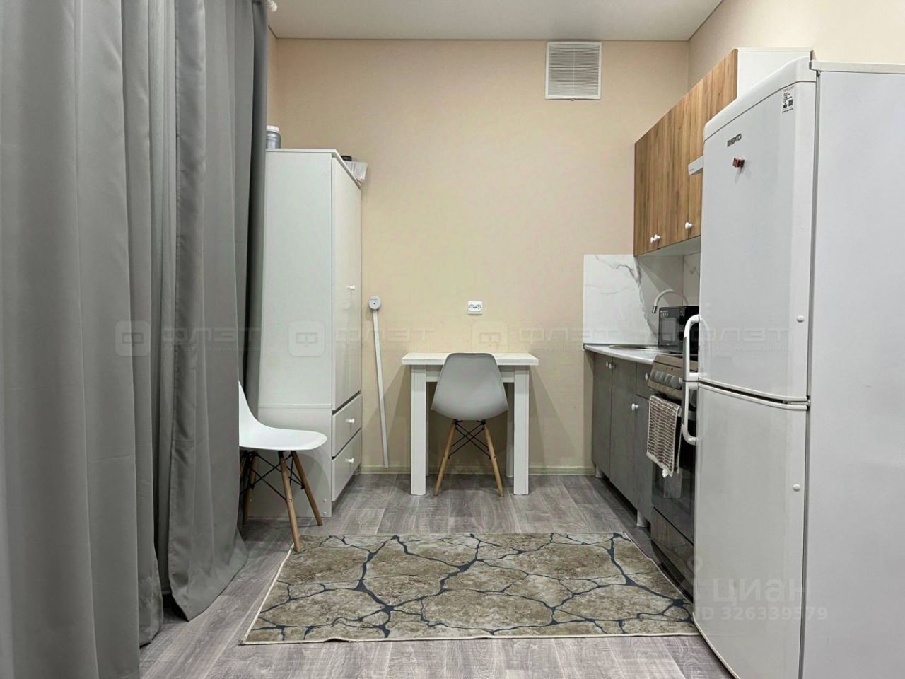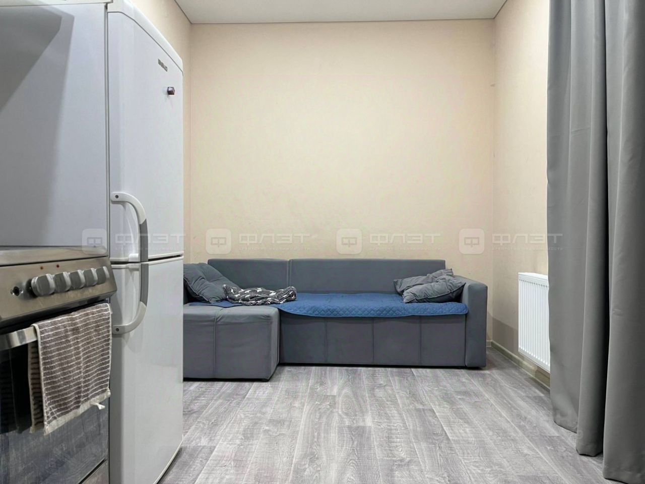 В квартире сделан свежий ремонт. Окна: пластиковые. Потолки: натяжные. Жильцам предоставляется из мебели: кухонный гарнитур, диван раскладной, шкаф, cтол, стулья. Из техники: холодильник, плита, духовка, микроволновая печь, чайник, стиральная машина.