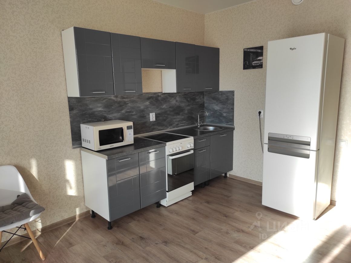 В студии есть все необходимое для проживания: кухонный гарнитур с электрической плитой и микроволновкой, холодильник, раскладной двухместный диван.