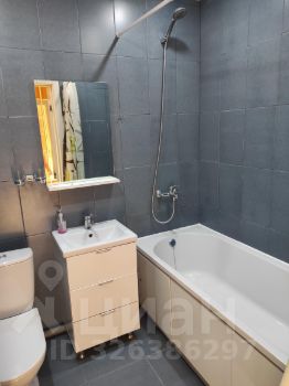 Санузел совмещенный. Установлена полноразмерная ванна и стиральная машина.
