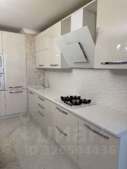 Кухня со встроенной техникой, а именно (микроволновка, духовка,посудомоечная машина), вытяжка, газовая поверхность.