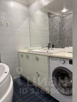 Ванная комната с огромной ванной, мебилировка ванной,стиральная машина.