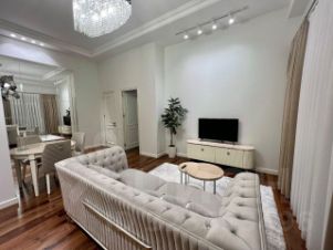 В квартире сделан свежий ремонт. Светлые стены и большие окна делают пространство светлым и уютным. Есть вся необходимая мебель: удобная двуспальная кровать, шкаф для одежды, обеденный стол и стулья. На кухне установлена современная техника: холодильник, плита и микроволновка. Санузел совмещённый, с новой сантехникой.