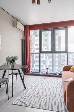 Эта однокомнатная квартира - сочетание комфорта и стиля. Смелый акцент в виде красных элементов, гармоничный интерьер, где каждая деталь на своём месте.