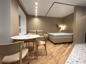 Квартира с качественным ремонтом и полностью готова к проживанию. Внутри есть современная мебель и вся необходимая бытовая техника, включая холодильник, стиральную машину и телевизор. Просторная планировка позволяет удобно зонировать пространство, а в совмещенном санузле установлена современная сантехника.
