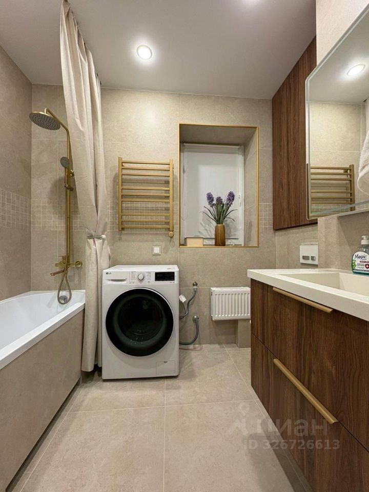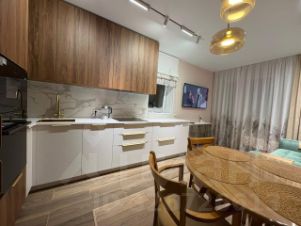 В квартире сделан современный ремонт в светлых тонах. Все комнаты меблированы: в гостиной уютный диван и TV-зона, в спальне — большая кровать и гардероб. На кухне есть вся необходимая техника: холодильник, плита, духовка и посудомоечная машина. Просторная ванная комната оборудована современной сантехникой. Планировка квартиры удобна и продумана до мелочей.