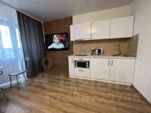 В квартире сделан современный ремонт с использованием качественных материалов. Пространство студии грамотно организовано, что делает её комфортной для проживания. В квартире есть необходимая мебель и техника: удобный диван, шкаф для хранения вещей, современная кухня с плитой и холодильником. Санузел совмещённый, оборудован всем необходимым для удобства.