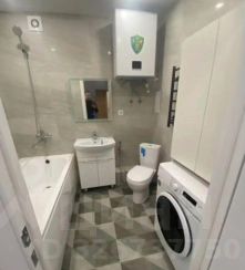 Квартира с новым ремонтом, выполненным в светлых тонах, что создаёт атмосферу тепла и уюта. В комнате установлена современная мебель, включая удобный диван и вместительный шкаф. На кухне есть всё необходимое для комфортного проживания: холодильник, плита, микроволновая печь и обеденный стол. Санузел совмещённый и оборудован современной сантехникой.