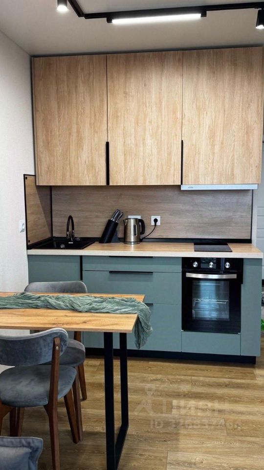 - Кухня-гостиная с обеденной зоной, раскладным диваном (гости смогут остаться с ночевкой! ), телевизором со Smart TV и техникой (индукционная плита, вытяжка, духовка).
