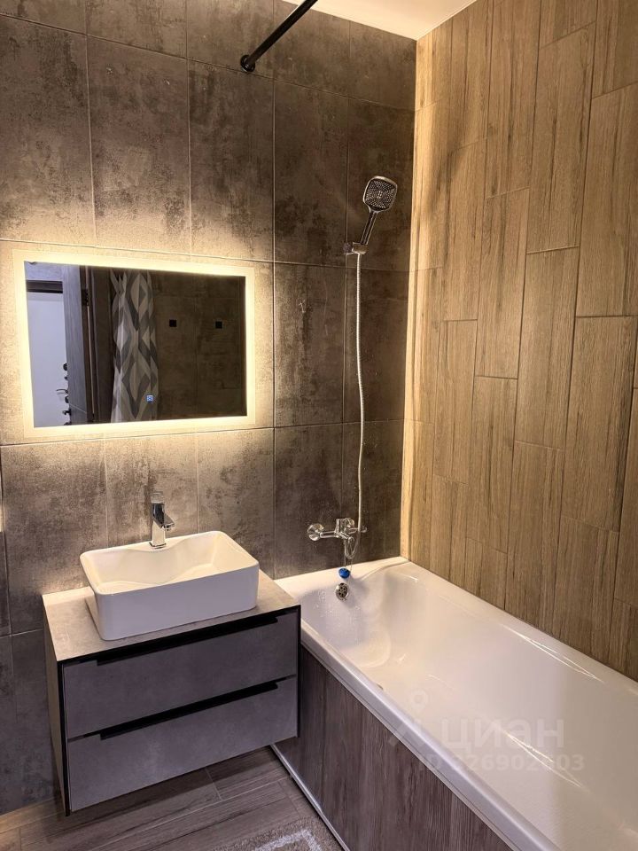 Сдаётся стильная однокомнатная квартира в новом доме 2025 года постройки. Общая площадь составляет 39 кв. м, а жилая — 18 кв. м. Квартира расположена на 15 этаже 19-этажного дома. Высота потолков — 2.65 метра. Окна выходят на улицу, а из балкона открывается прекрасный вид.