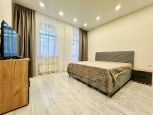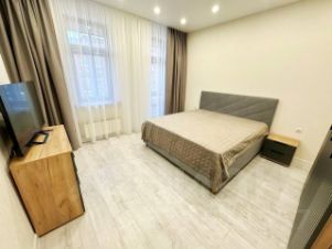 В квартире есть всё необходимое для комфортного проживания: кондиционер, холодильник, посудомоечная машина, телевизор и стиральная машина. Продуманная планировка включает совмещенный санузел с ванной и балкон с видом во двор. Мебель установлена как на кухне, так и в комнате, обеспечивая уют и удобство.