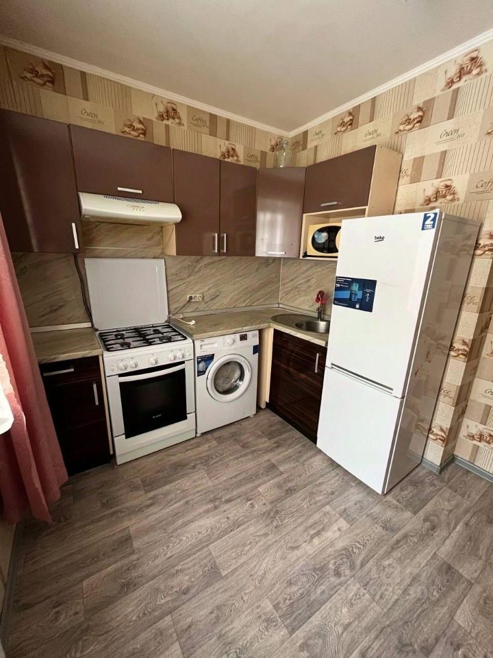 Квартира с косметическим ремонтом, в наличии всё необходимое для комфортного проживания. Есть мебель как в комнате, так и на кухне. Из техники — холодильник, телевизор и стиральная машина. Ванная комната оборудована ванной, санузел совмещённый. Балкон также имеется, что добавляет дополнительное пространство для отдыха.