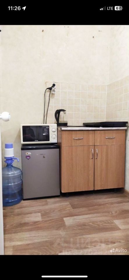Сдаётся уютная гостинка в кирпичном доме на втором этаже. Общая площадь квартиры составляет 18 квадратных метров, жилая — 10 квадратных метров, а площадь кухни — 6 квадратных метров. Высота потолков — 2.7 метра.
