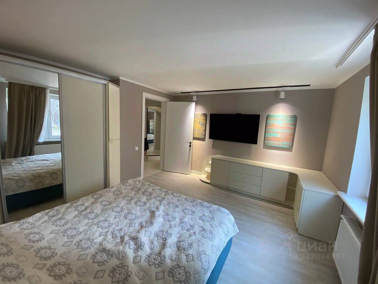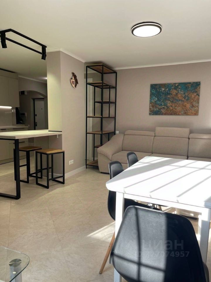 Квартира полностью меблирована и готова к комфортному проживанию. В светлой комнате установлен удобный диван, есть шкаф для одежды и рабочее место. Кухня оборудована всей необходимой техникой: холодильник, плита, духовка. Санузел совмещенный, с современной сантехникой.