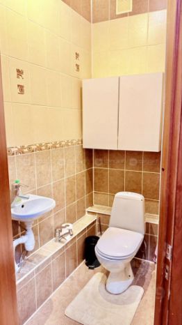 В квартире сделан современный ремонт. Полы: ламинат, плитка. Окна: пластиковые. Потолки: оштукатуренные, сохранена высота потолков. Сан. узел в кафеле. Есть балкон.