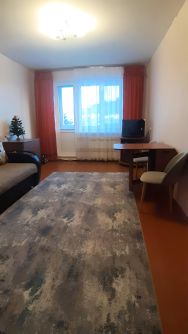 В квартире сделан косметический ремонт, поэтому она выглядит аккуратно и опрятно. Комната обставлена необходимой мебелью, на кухне площадью 6 кв. м есть вся необходимая техника: телевизор, холодильник и стиральная машина. Санузел совмещённый, с современными сантехническими приборами. Окна выходят во двор, что обеспечивает тишину, спокойствие и много света. Также есть балкон с видом на каштан.