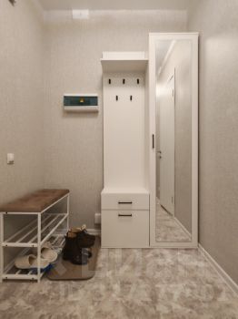 Прихожая с зеркалом, банкетка с полочкой для обуви.