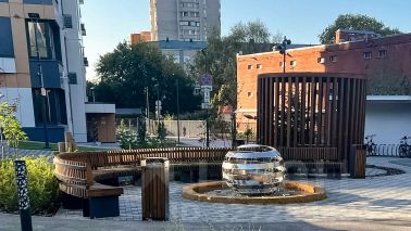 Для любителей спорта - отгороженная спортивная площадка с уличными тренажерами.