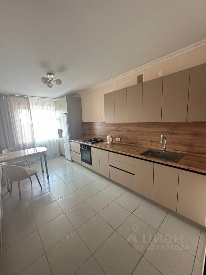 Квартира с евро ремонтом, светлая и просторная. В комнате установлен шкаф и диван, что обеспечивает комфортное проживание. Просторная кухня площадью 20 м² оснащена современной техникой: холодильник, газовая плита, микроволновая печь и духовой шкаф.