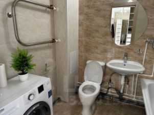 В квартире выполнен евроремонт, интерьер изящно оформлен. Здесь есть всё необходимое для комфортного проживания: на кухне и в комнате имеется мебель, техника — холодильник, телевизор, стиральная машина.. Ванная комната оборудована полноценной ванной. Также есть лоджия, где можно отдохнуть или устроить небольшую зону для работы.