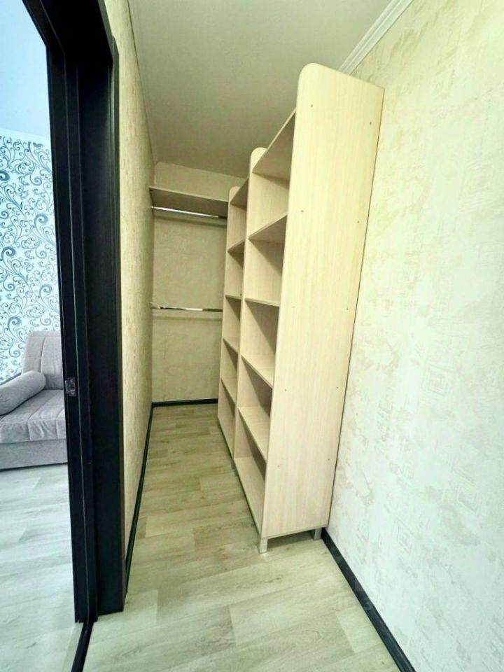 Квартира с отличным ремонтом, первая сдача. В комнате удобная гардеробная. Просторная гостиная вмещает раскладное кресло для отдыха, раскладной диван, ТВ.