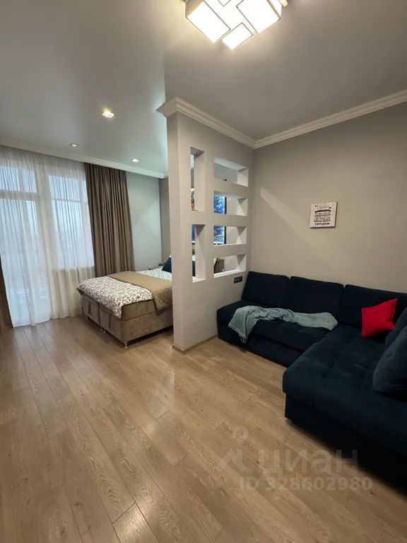 - Просторная однокомнатная квартира на 21 этаже с шикарным видом из окна с атмосферой уюта, где легко разместится пара или небольшая семья.