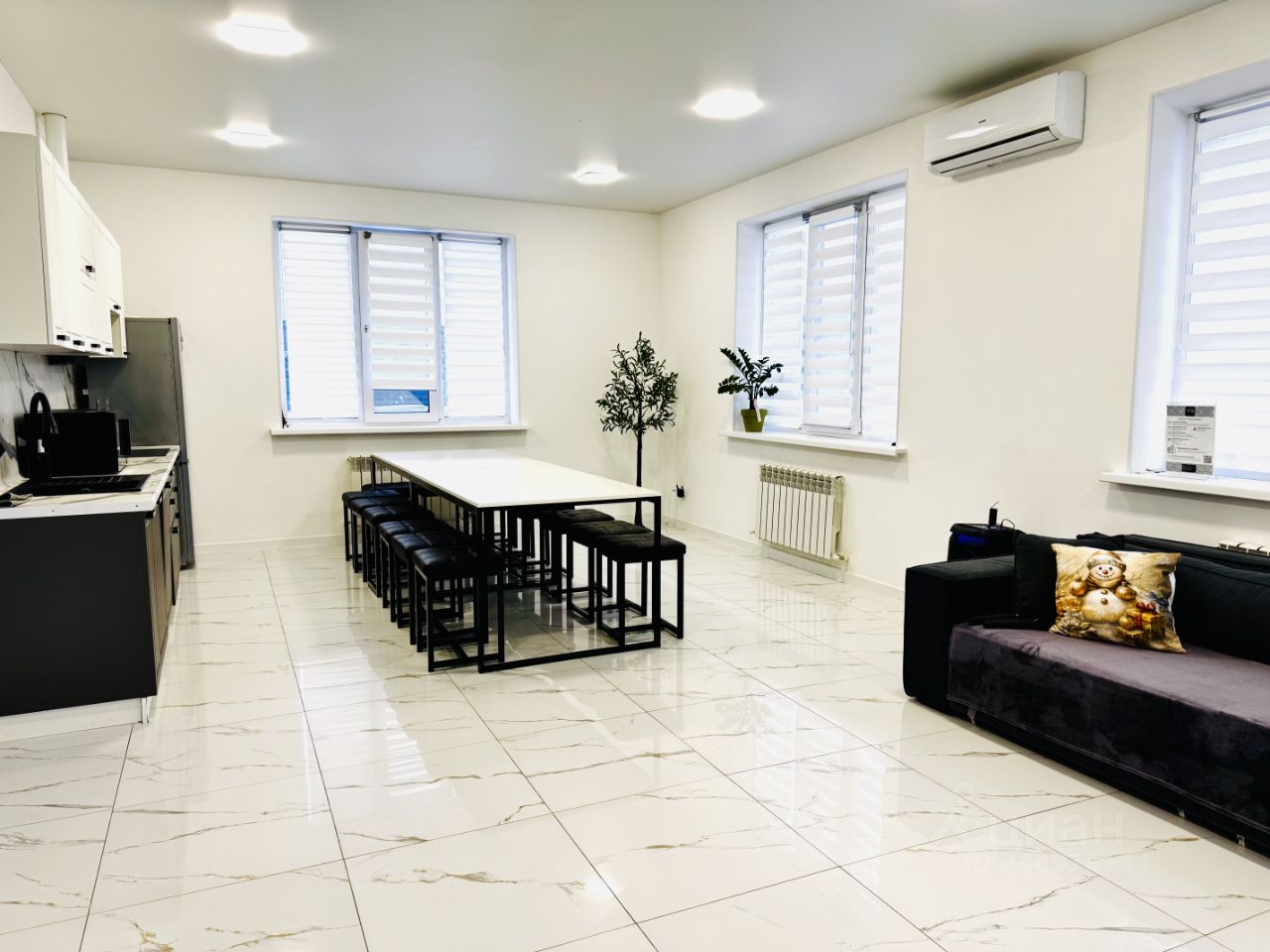Просторная гостиная: Большой обеденный стол, комфортные диваны, кондиционер.