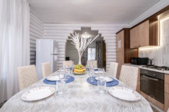 Просторный деревянный дом 160 м² с баней на дровах и сибирским чаном - идеальный формат для семейного отдыха или компании.