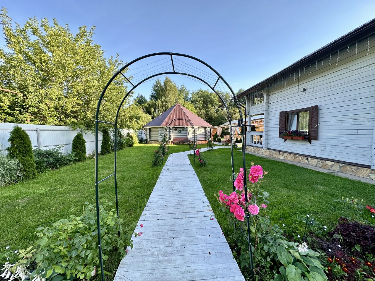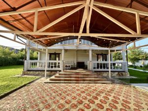 Огромная зелёная территория с ландшафтом, деревьями и уютным прудом рядом