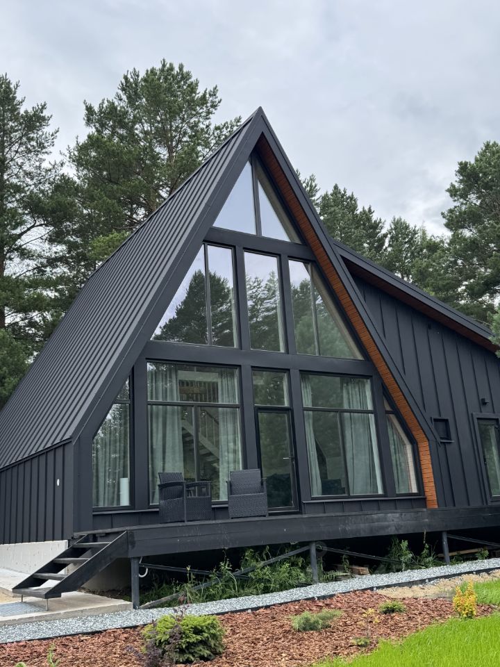 V Дом с панорамными окнами с шикарным видом в лес - просторные террасы и все для вашего комфортного отдыха .