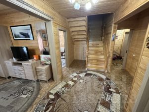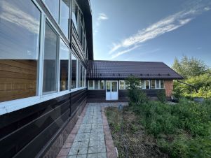 Дом из клеенного бруса с большой ухоженной территорией, с гаражом и баней.