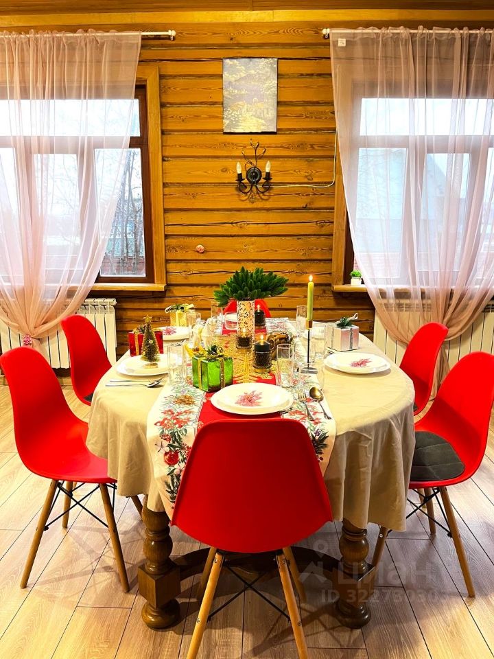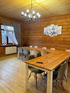 Вместительные обеденные зоны: на кухне — стол на 8 персон, в гостиной — большой стол на 18 персон.