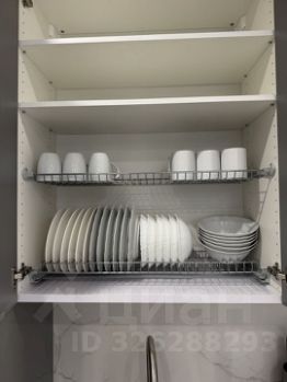 Кухня полностью оснащена посудой, есть холодильник, плита, микроволновка, чайник, духовка.